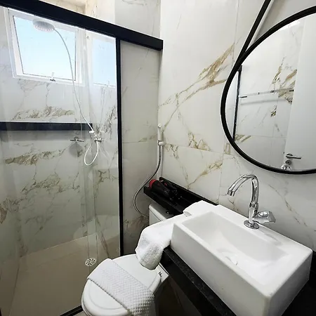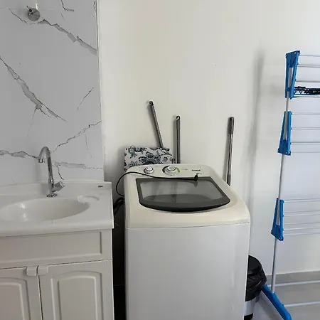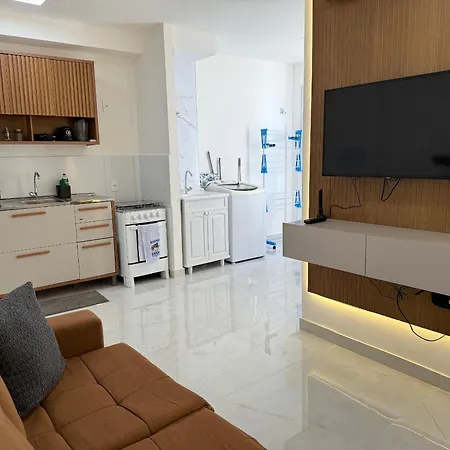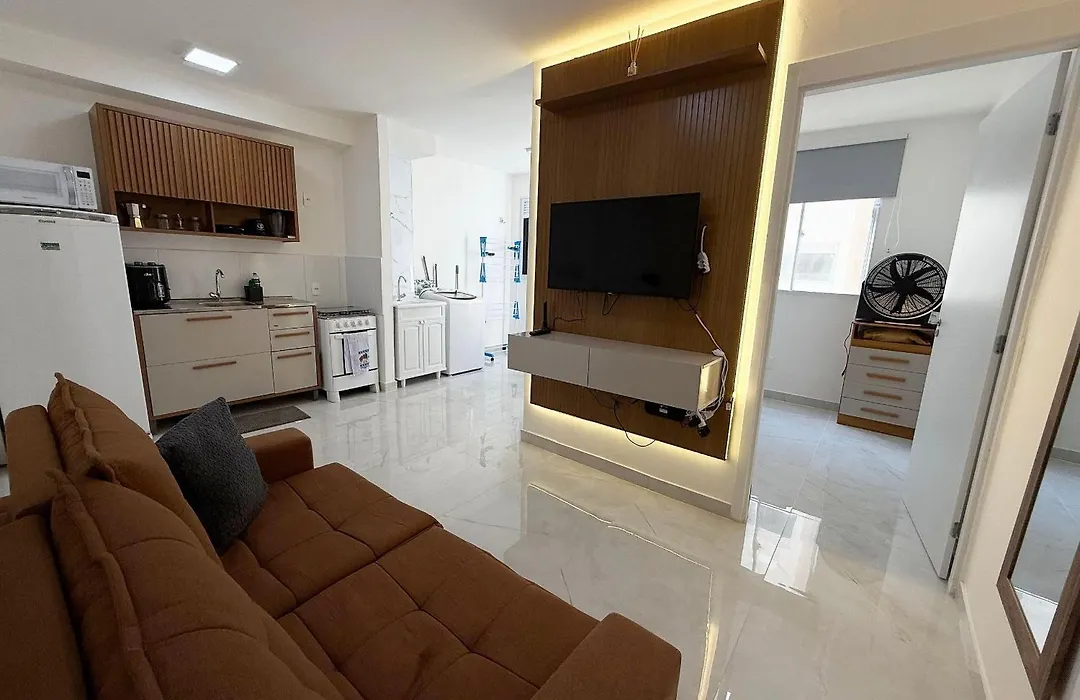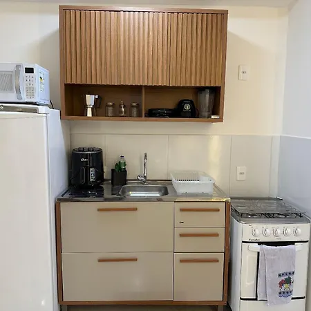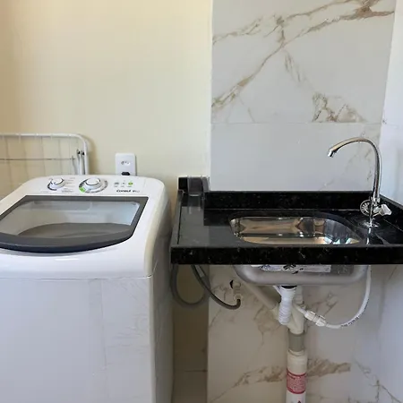 This apartment offers a seating area and a fully equipped kitchen, as well as comforts like air conditioning. A highlight of Hosts Br - Apartamento Economico Pe Na Areia for guests is the presence of toiletries and bath sheets in the bathroom.